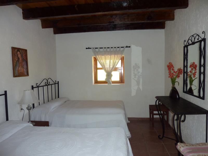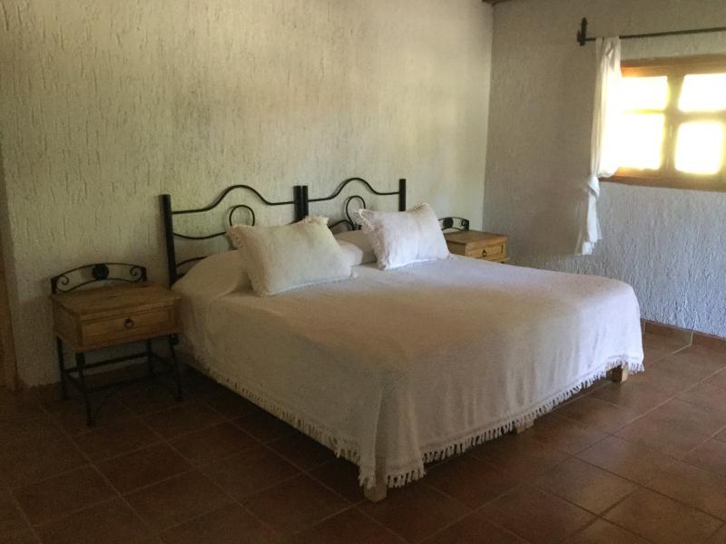 Esta casa de turismo rural dispone de amplios espacios totalmente amueblados con 2 chimeneas. Las 8 recamaras son amplias con todas las comodidades. La casa cuenta con 5 baños completos y 2 medios baños. Capacidad de 10-28 personas cómodamente. Cocina completa para 24 personas, comedor para 18 personas. Amplios jardines y terrazas con 2 chimeneas y 4 baños exteriores. La propiedad y amplio estacionamiento privado es ideal para familias y grupos grandes.